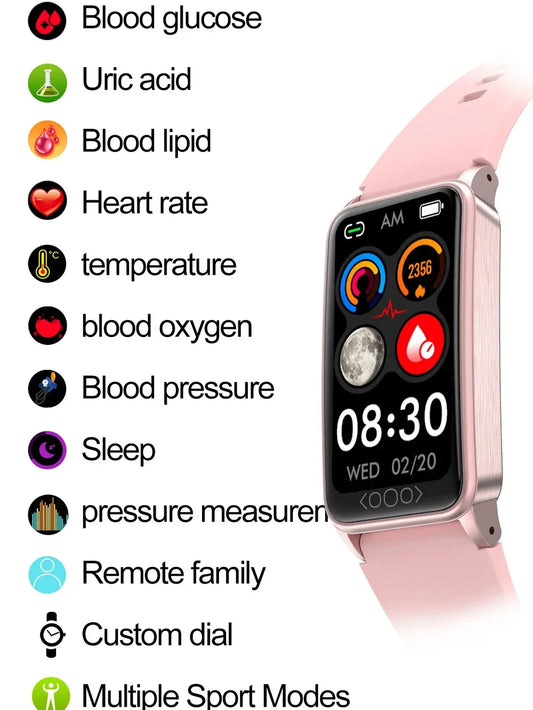 Intelligentes Armband zur Überwachung von Blutzucker, Körpertemperatur, Harnsäure, Blutfetten, Blutdruck und Herzfrequenz. Wasserdichte Smartwatch.