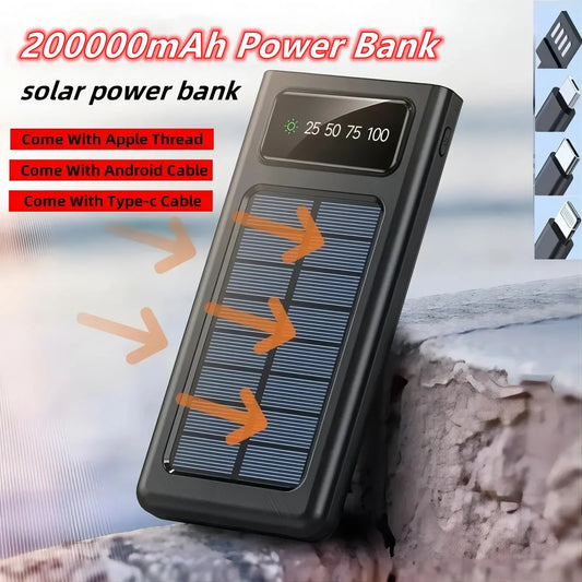200000mAh Ultra-Large Capacity Power Bank Solar Charging Power Bank Comes With Four Wires Suitable For Samsung Apple Huawei
